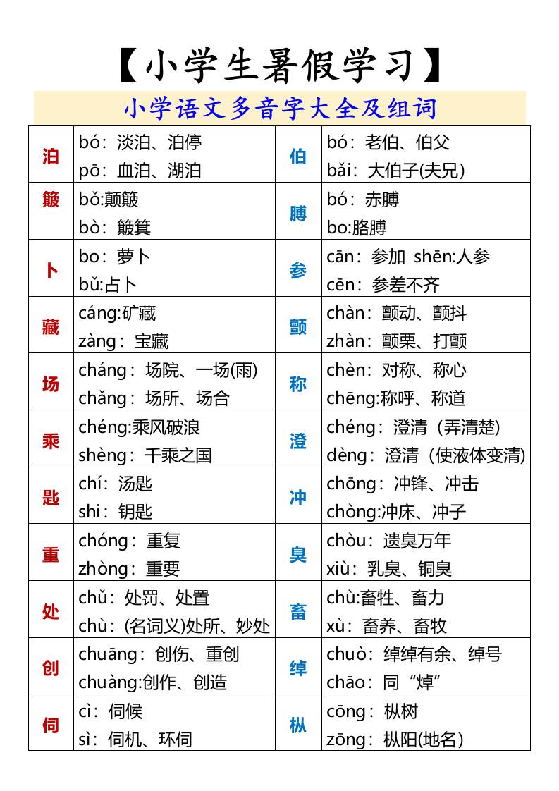 【小学生暑假学习】小学语文多音字大全及组词-小升初语文 暑假 幼师郝雪 2025-10-25 小升初 资源下载下载价格1.8 下载币VIP免费升级VIP立即购买 ——预览已结束,还剩3页未读——开通会员后可免费下载高清完整文档 阅读全文