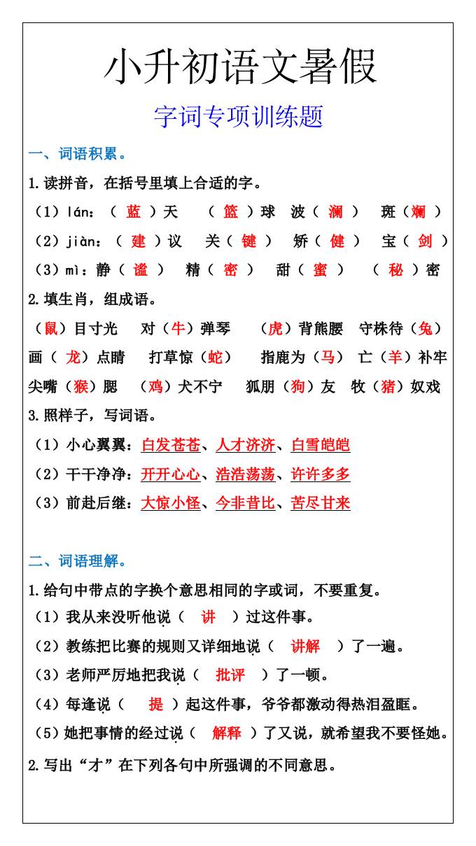 小升初语文字词专项训练题,暑假能力提升-小升初语文 暑假 幼师常 2025-10-24 小升初 资源下载下载价格0.8 下载币VIP免费升级VIP立即购买 ——预览已结束,还剩1页未读——开通会员后可免费下载高清完整文档 阅读全文