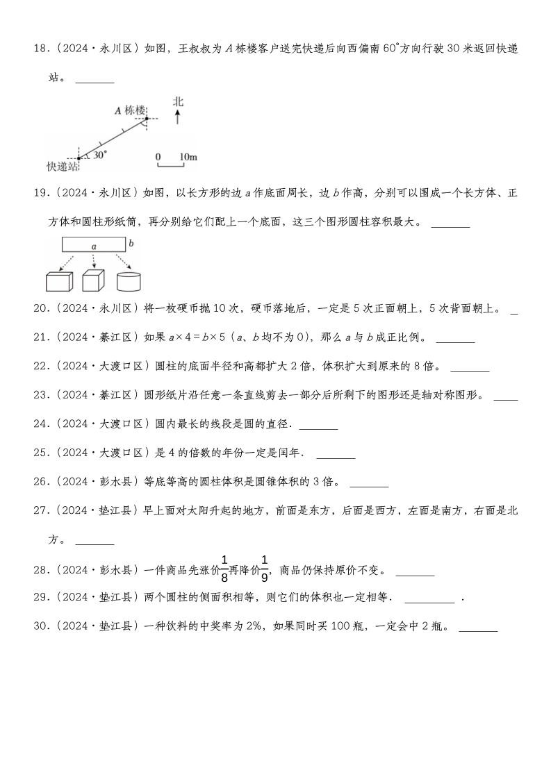 小升初人教版数学【真题汇编:判断题】 真题 幼师芒果 2025-10-24 小升初 资源下载下载价格1.8 下载币VIP免费升级VIP立即购买 ——预览已结束,还剩12页未读——开通会员后可免费下载高清完整文档 阅读全文