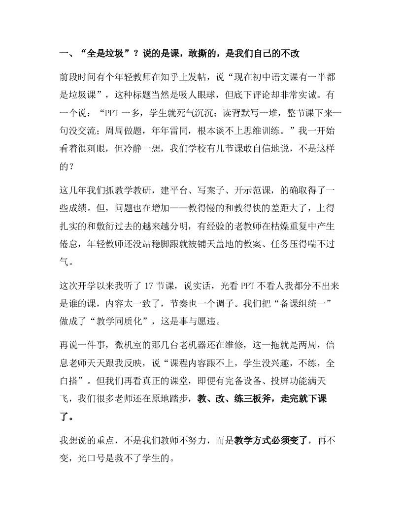 教学副校长在全体教师大会上讲话:全是垃圾?我们该和低效课堂彻底说再见了! 综合资料 刘波老师 2025-10-23 教务 资源下载下载价格1.2 下载币VIP免费升级VIP立即购买 ——预览已结束,还剩4页未读——开通会员后可免费下载高清完整文档 阅读全文