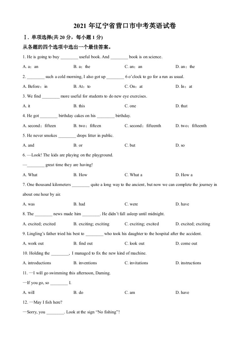 辽宁省营口市2021年中考英语试题(空白卷) 真题 幼师郝雪 2025-09-20 中考 资源下载下载价格0.8 下载币VIP免费升级VIP立即购买 ——预览已结束,还剩14页未读——开通会员后可免费下载高清完整文档 阅读全文