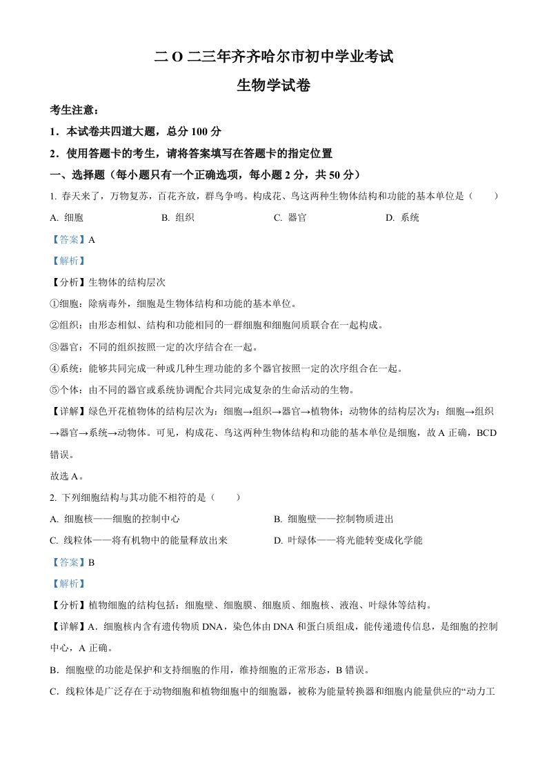 2023年黑龙江省齐齐哈尔中考生物真题(含答案) 真题 幼师PPT 2025-09-20 中考 资源下载下载价格0.8 下载币VIP免费升级VIP立即购买 ——预览已结束,还剩21页未读——开通会员后可免费下载高清完整文档 阅读全文